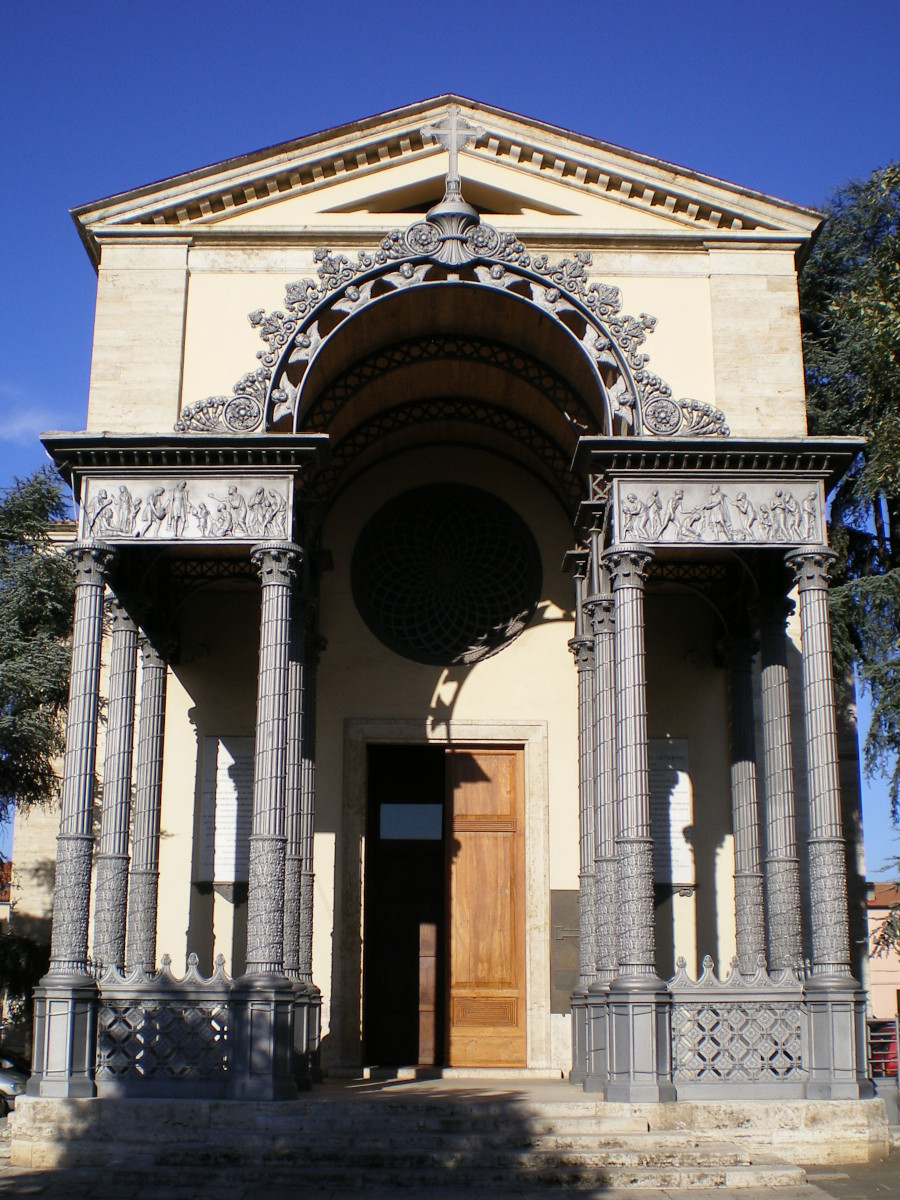 Progettata da Alessandro Manetti e Carlo Reishammer tra il 1836 e il 1838, la chiesa presenta un impianto neoclassico a croce latina ed è arricchita da numerosi elementi in ghisa — il pronao, il rosone della facciata, l’abside, diversi arredi interni e il coronamento del campanile — realizzati nel reparto di fonderia artistica attivo dal 1835 nello stabilimento di Follonica. Il pronao, ispirato alla Cappella Pazzi di Firenze e al suo impianto brunelleschiano, fu concepito come manifesto delle potenzialità tecniche ed estetiche della fonderia granducale.Gli arredi interni provengono anch’essi dalle storiche fonderie follonichesi, arricchiti dalle decorazioni parietali di Giuseppe Castellucci (1928) e dal fonte battesimale realizzato da Lorenzo Nencini nel 1841.