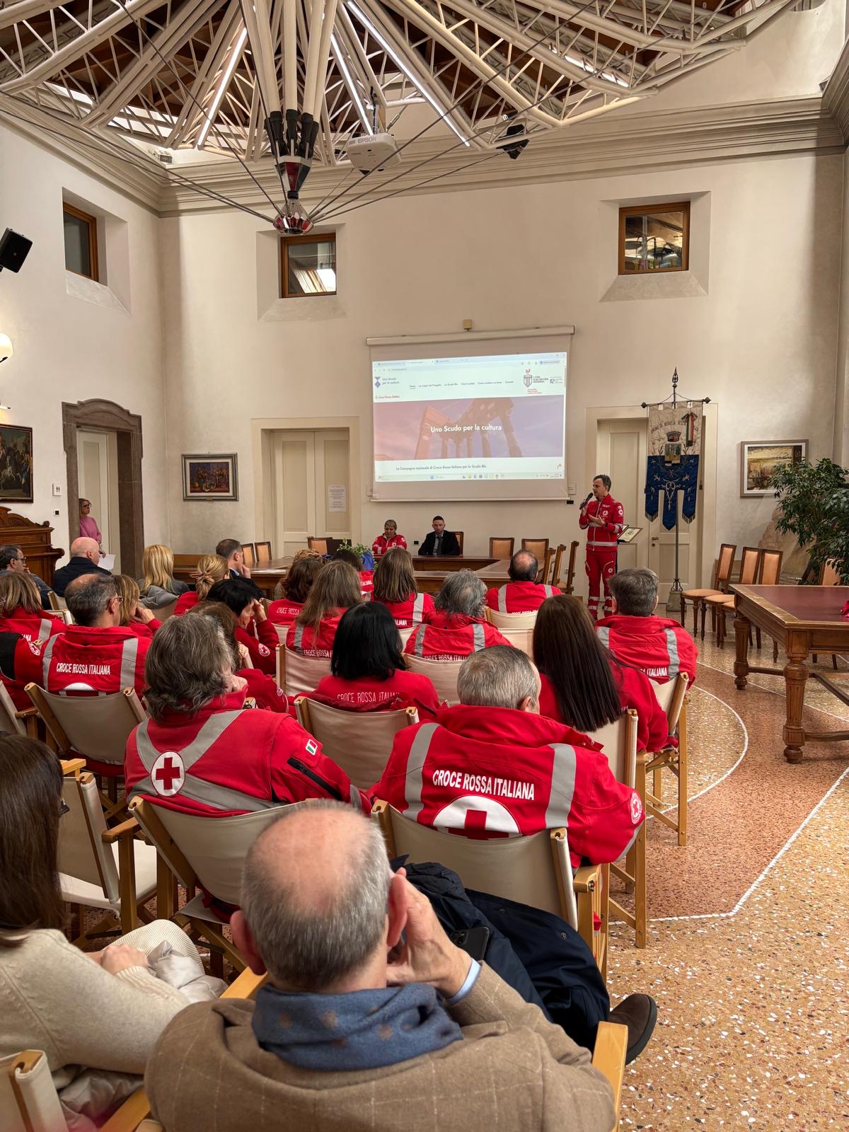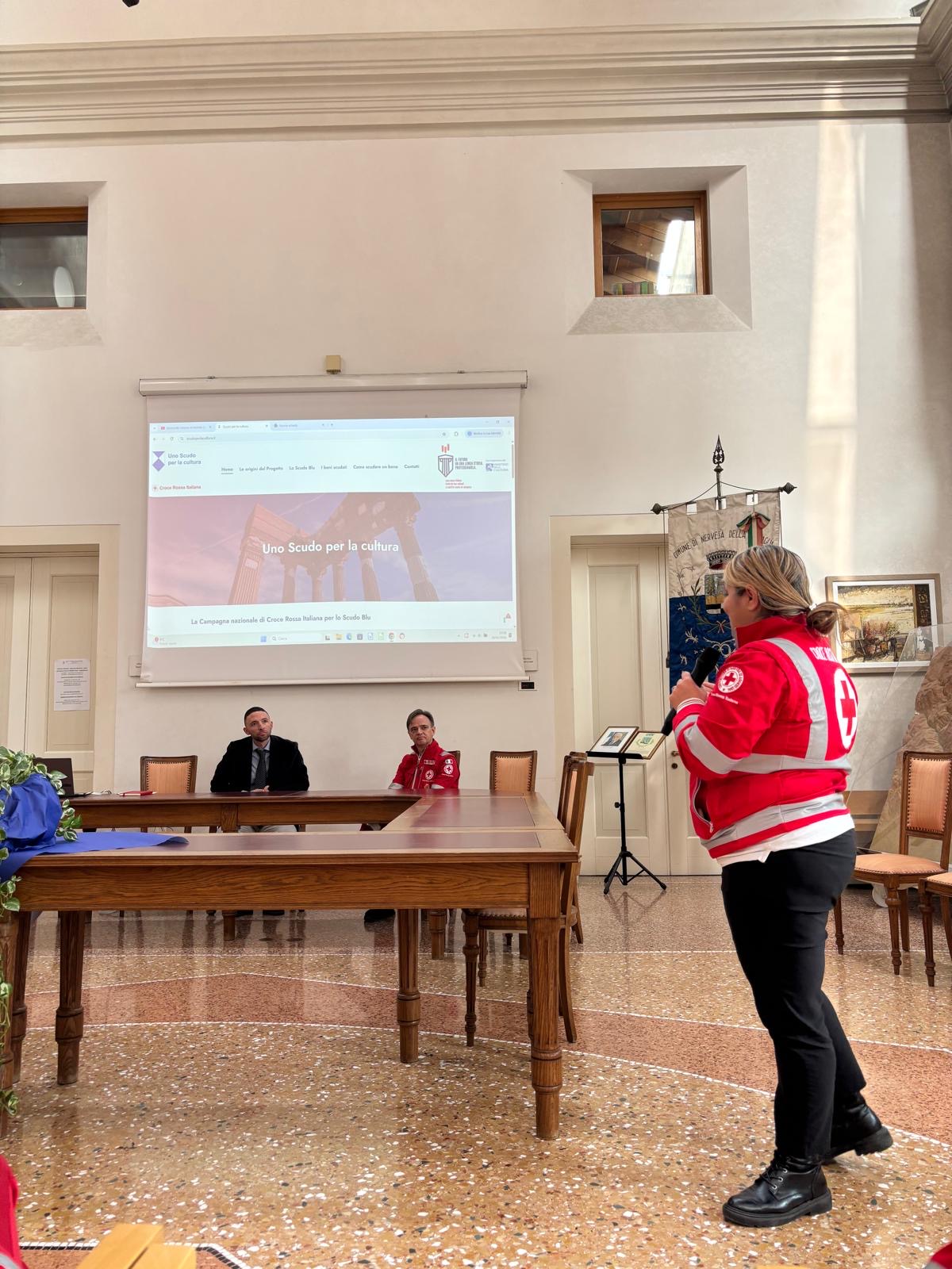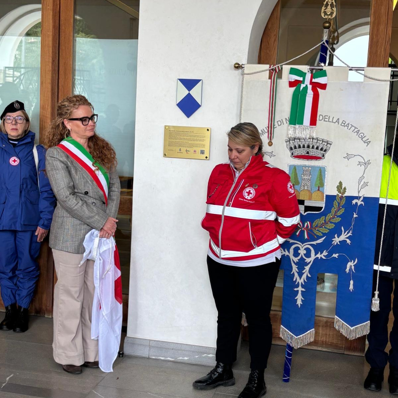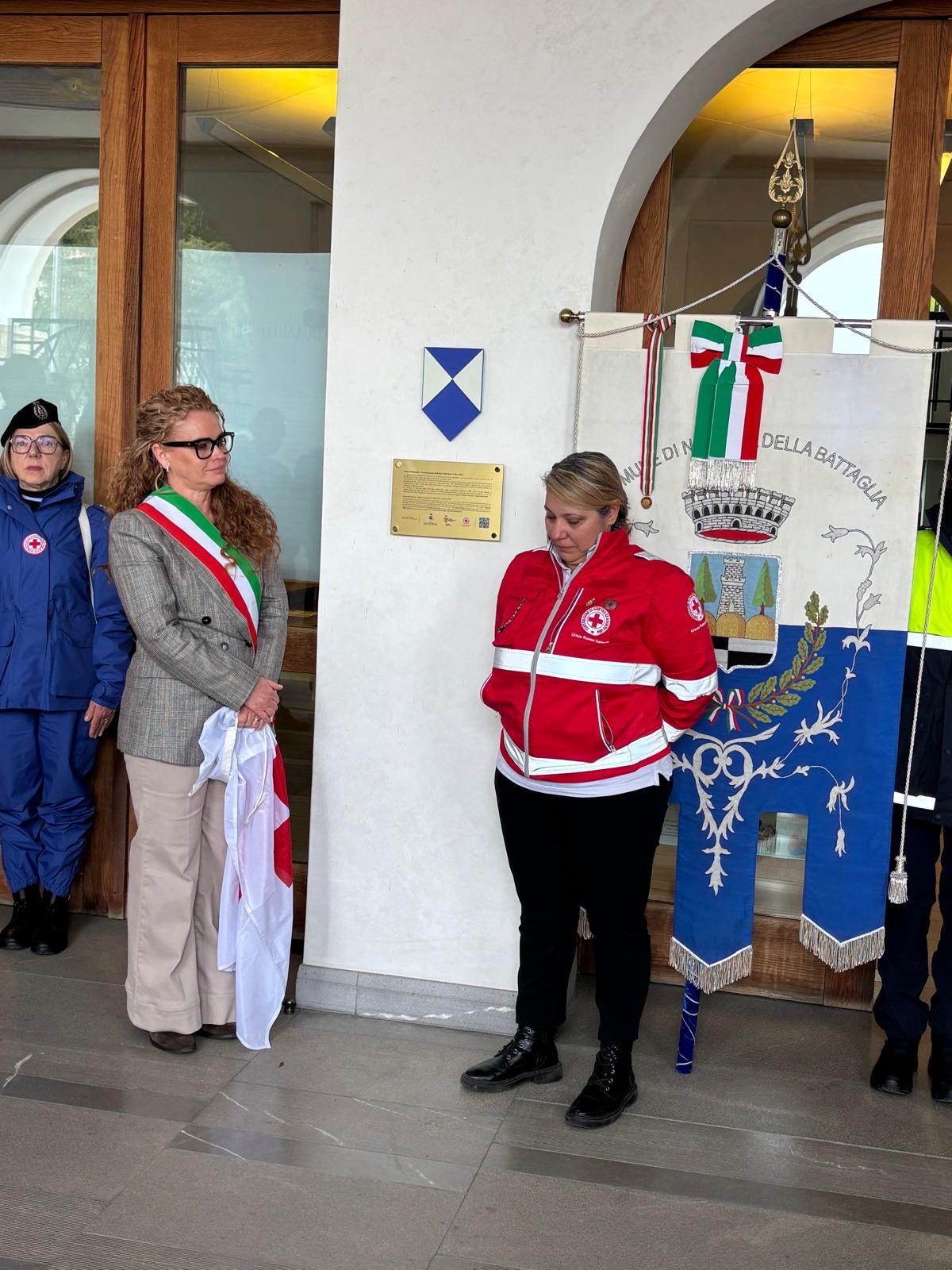La riproposizione degli affreschi nel soffitto del portico d’ingresso, realizzata dal Maestro Paolo Scarpa, intende mantenere un legame simbolico con il ciclo tiepolesco originario: le nuove pitture, articolate in tre allegorie, esprimono lo spirito di continuità della comunità di Nervesa nel passato, nel presente e nel futuro, in armonia con l’idea architettonica della rinnovata sede municipale.